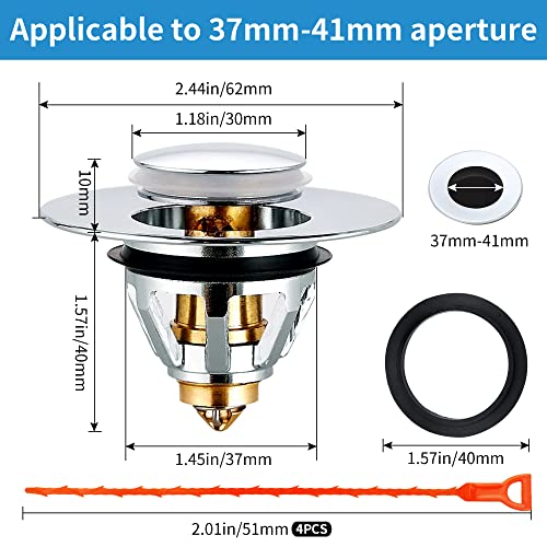 Tappo Vasca da Bagno Universale, 37~ 41mm, Tappo Lavandino Bagno Pop Up, Tappo Lavandino Bagno a Molla Inox, Rame Puro Tappo di Scarico per Lavabo, Tappo Lavandino per Cucina, Bagno, Vasca, Lavabo