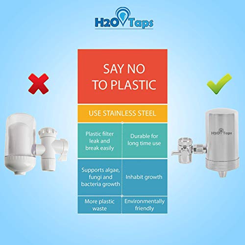 H2O TAPS Filtri d'Acqua per Rubinetto - Sistema di filtraggio - Design Molto Elegante - Filtro per Acqua Elimina 100% Cloro - Acciaio Inossidabile - La Scelta Duratura