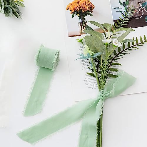 Tapsin 3 Rotoli di Nastro in Chiffon 3.8cm x 6.4m Nastro verde Fatto a Mano Nastro di Seta Chiffon Nastro Decorativo con Frange per Bouquet Confezione Regalo Fai Da Te