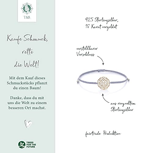 Tara Bracciale da donna Mandala, in argento 925, placcato oro Macramee Fairtrade, molti colori, Argento sterling
