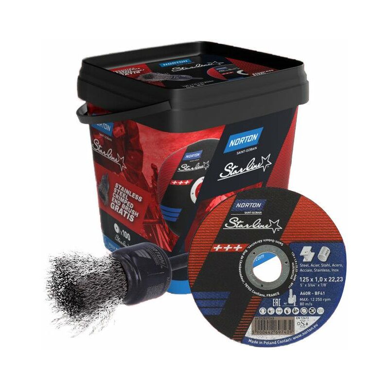 TARCZA DO PRZECINANIA NORTON STARLINE A60R 125x1.0x22.23 /100 sztuk +SZCZOTKA PĘDZELKOWA