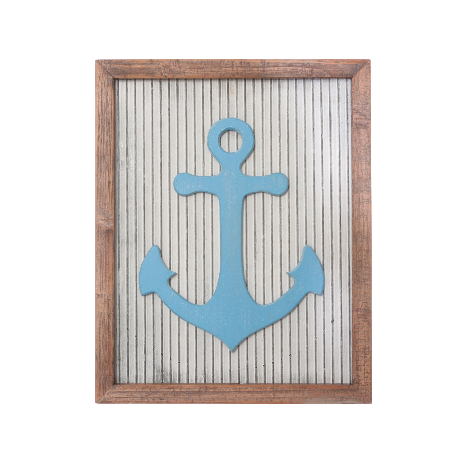 Colorata targa con cornice in legno e decoro centrale rappresentante un'ancora azzurra. Ideale da appendere alla parete per valorizzare l'arredamento delle vostre stanze, donando modernità e vivacità. Si appende con facilità e la massima stabilità tramite gli appositi ganci posti sul retro.