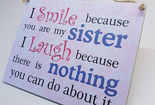 Targa da appendere dedicata alla sorella, perfetta come regalo di compleanno o di Natale, con scritta in inglese '"I Smile Because you are my Sister!
