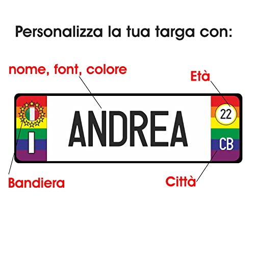 GFD - Targa Auto con Nome o Frase Personalizzata in Alluminio 3 mm - 36 x 11cm - Disponibile Diversi sistemi di fisaggio a Scelta per poterla Fissare in Auto - Made in Italy.