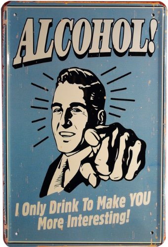 Targa in metallo con alcol "I only drink to make you.", 20 x 30 cm, in stile retrò 976