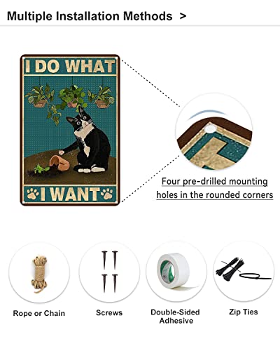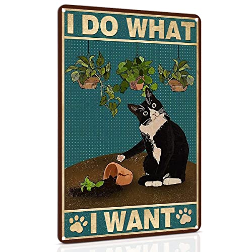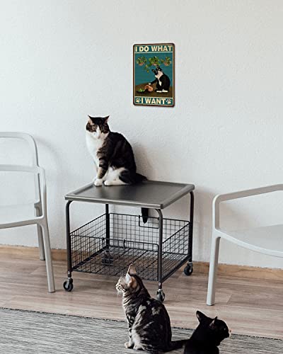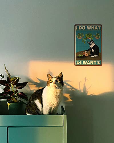 Targa in metallo divertente con gatto smoking 30 x 20 cm - I Do What I Want - Targa in metallo vintage con gatto nero, decorazione da parete per soggiorno, bagno, giardino, camera da letto, caffè, bar
