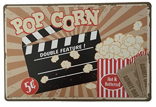 Targa in metallo con la scritta in lingua inglese "PopCorn", targa retrò vintage da parete 20 x 30 cm. Decorativa ideale per pub, bar, ufficio, casa, camera da letto, sala da pranzo, cucina. Regalo fantastico e classico, in stile shabby chic