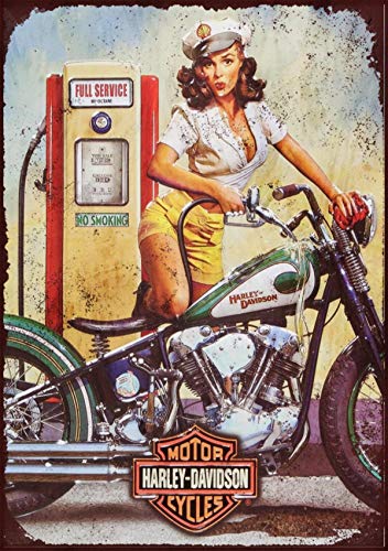 Targa in metallo stile retrò Harley Davidson Girl at the Pump