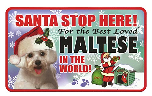 Targa natalizia con scritta in lingua inglese "Santa Stop Here for the Best Loved Dog in the World" MALTESE