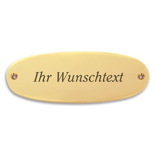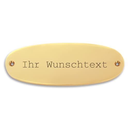 Targa nome con testo personalizzato in ottone - 134 x 49 mm, ovale - targhetta in ottone