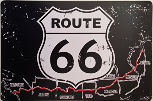 Targa da parete in metallo, stile vintage, in latta, a tema Route 66 in America, mappa della strada negli USA, US, viaggio in macchina