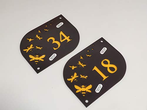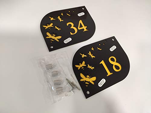 Targa da parete con numero civico in acrilico, design moderno, colore: nero/giallo