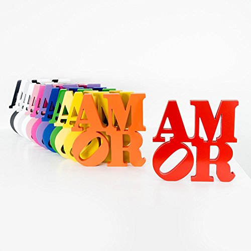 Targa Scritta in Legno Laccato Amor Colore Rosso - Lettera da appoggio Amore