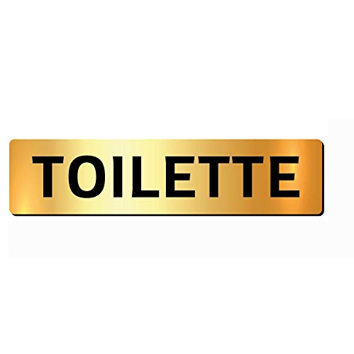 Targa Segnale Toilette WC Bagno in metacrilato Color Oro Lucido Specchio autoadesiva per Toilette WC Bagno mm 180x43x3