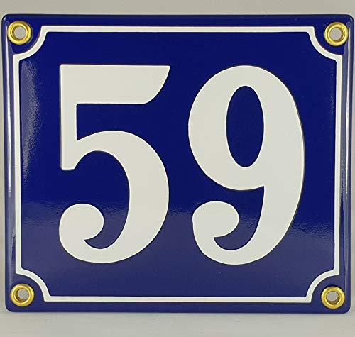 Targa smaltata numero civico 59 blu e bianco "fatto a mano"