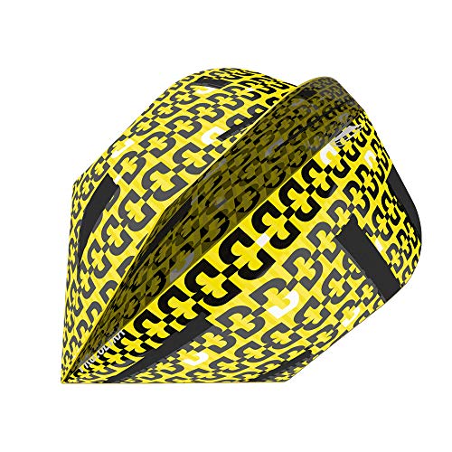 La confezione contiene: 3 fusti per freccette, 3 aste Pro Grip gialle, 3 alette numero 6 con disegno bolide giallo, 3 punte morbide nere Pixel Points