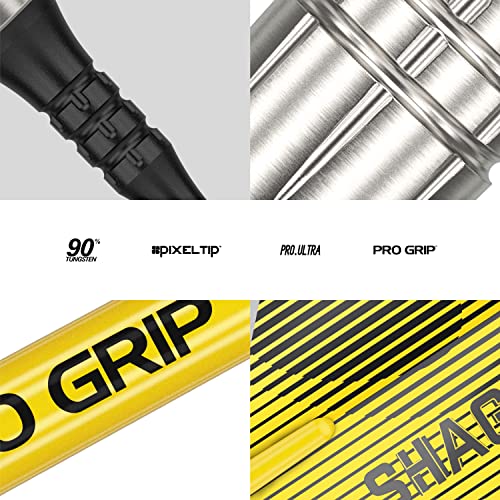La confezione contiene: 3 x fusti per freccette, 3 x albero giallo Pro Grip, 3 x Scott Williams G1 No.2 voli, 3 x pixel neri punta morbida