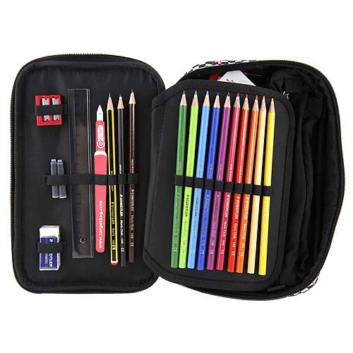 Astuccio offre uno spazio interno sufficiente con una tasca con zip cucita sufficiente per le esigenze dell studenti più giovani e più anziani