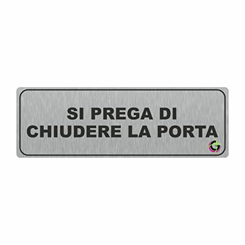 TARGHE ADESIVE ALLUMINIO SATINATO - chiudere la Porta - Targhette Autoadesive, Impermeabili Lavabili, uffici, Pub, Banche, aziende, ufficio (20x7 cm)