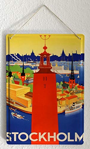 Targhe Cartello Targa in Metallo Decorazione della Parete Vacanza Agenzia Di Viaggi Faro Stoccolma