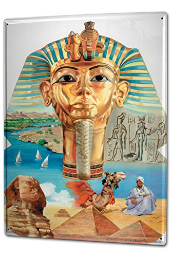 Targhe Cartello Targa in Metallo Decorazione della Parete Antico Egitto Faraone Sphinx Geroglifici Piramide Deserto Insegna In Metallo Decorazione 20X30 cm