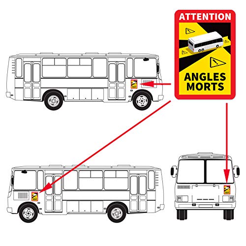 6 targhe magnetiche per autobus con la scritta in francese “Angle Morts”, da posizionare negli angoli ciechi.