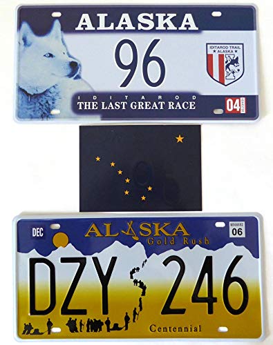 OPO 10 - Set di 2 targhe in Metallo per Auto USA - repliche di Vere targhe Americane Alaska