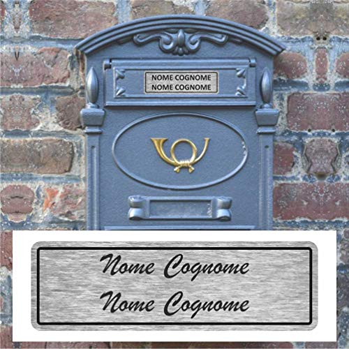 Targhetta in alluminio Nome e Cognome per cassetta della posta (Alluminio Colore Argento, Misura 100x30mm)