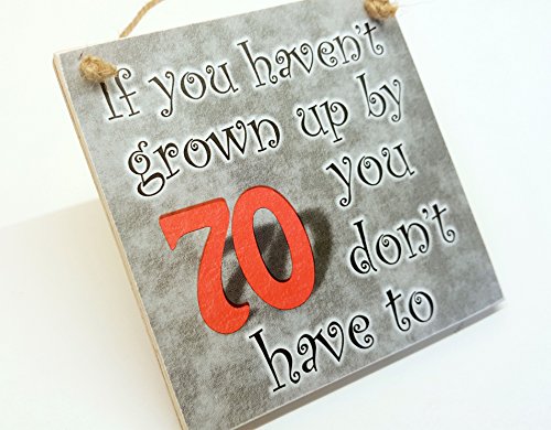 Targhetta da appendere, con scritta in inglese “If you haven't grown up by 70 you don't have to”, idea regalo per settantesimo compleanno, per uomo, donna, fratello, amici