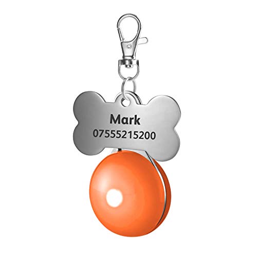 Targhetta per cani in acciaio inox personalizzabile con incisione di qualità E ha condotto la luce notturna (rosso, M)