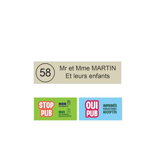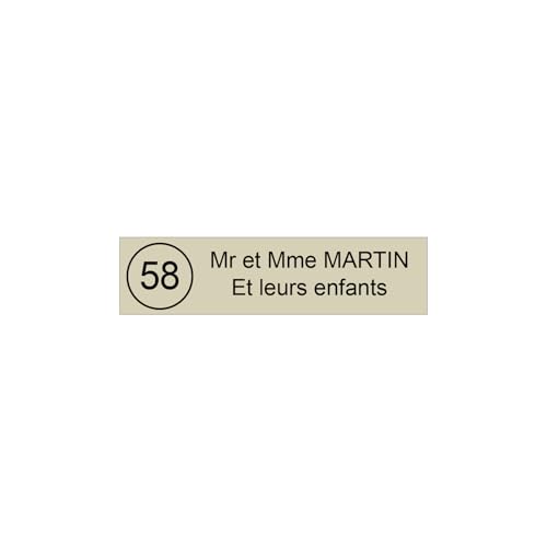 Targhetta per cassetta delle lettere con numero formato Decayeux (100 x 25 mm), superficie beige con lettere nere, 2 linee di testo, plastica, 0,16 cm