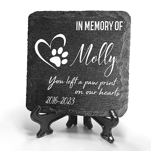 Targhetta commemorativa personalizzata TULLUN con supporto per animali domestici, gatto, cane, ardesia, pietra, marcatore per tombe di zampe, dimensioni 10,2 x 10,2 cm o 100 x 100 mm | Stampa zampa