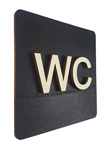 Targhetta per WC nera in legno, con immagine stilizzata di uomo e donna, 14 x 14 cm, Legno, Nero, 14 x 14 cm