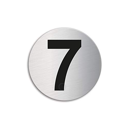 Targhetta Numero 7 | Targa Cartello acciaio inossidabile spazzolato Ø 60 mm autoadesiva