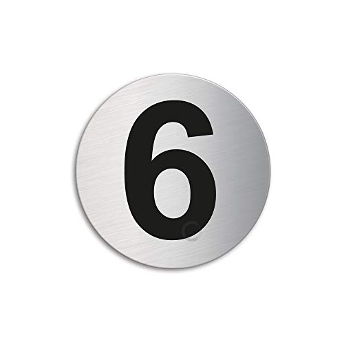 Targhetta Numero 6 | Targa Cartello acciaio inossidabile spazzolato Ø 60 mm autoadesiva