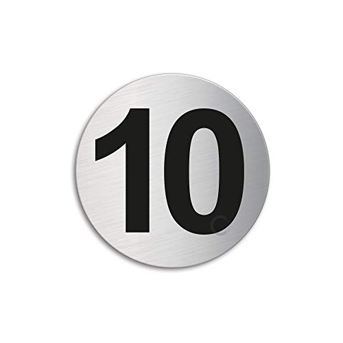 Targhetta Numero 10 | Targa Cartello acciaio inossidabile spazzolato Ø 60 mm autoadesiva