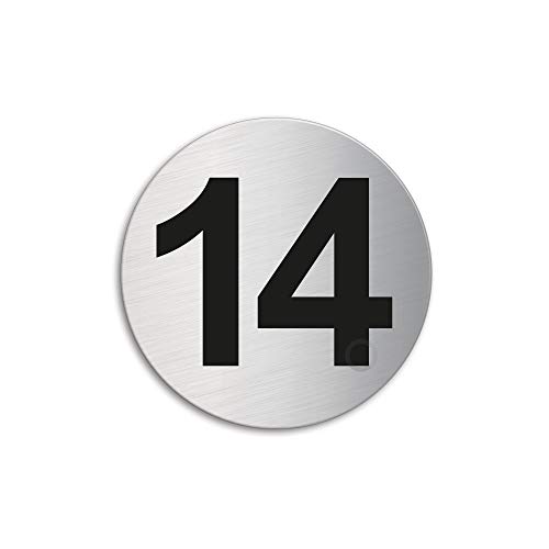 Targhetta Numero 14 | Targa Cartello acciaio inossidabile spazzolato Ø 60 mm autoadesiva