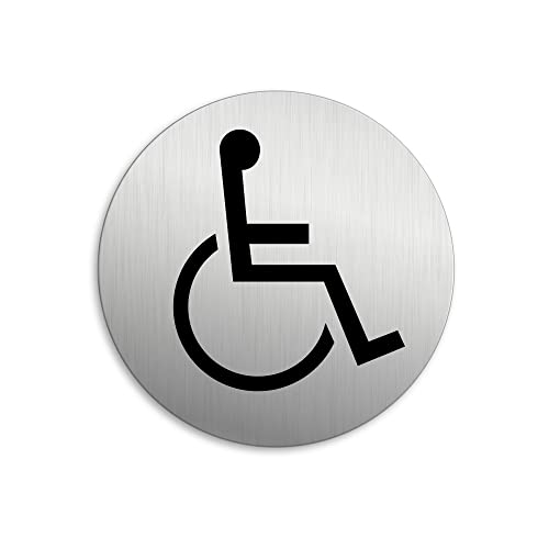 Targhetta per Porta - Handicap Targa Ø 75 mm Alluminio spazzolato auto-adhesiva