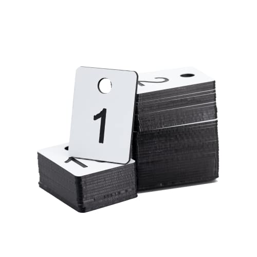 Targhette portachiavi rettangolari numerate, in plastica ABS, numerate, con foro (1-50, bianco)