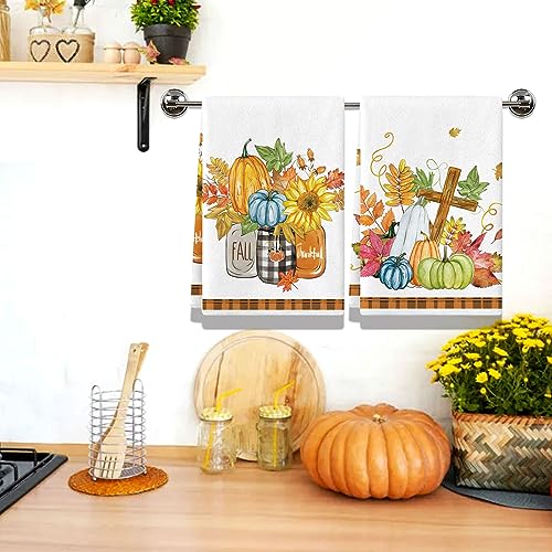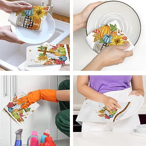 Tarklanda Strofinacci Cucina Autunno Girasole, Canovaccio Cucina Autunnali Zucca Foglia d'Acero, Asciugamani da Cucina per Cucine Domestiche per Natale e Giorno del Ringraziamento 2 Pezzi 45 x 70 cm