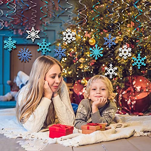 Kit Fiocchi di Neve Decorativi: Otterrai 36 decorazioni a spirale di fiocchi di neve, 18 fiocchi di neve a spirale e 18 doppie spirali. (6 blu, 6 blu scuro, 6 argento) Il diametro del fiocco di neve è di circa 14 cm. Rendi la tua stanza piena di romanticismo invernale.