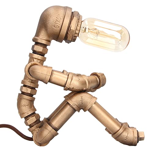 TARSHYRY Lampada a Tubo Robot, Lampada Robot Industriale Supporto a Forma di Robot Lampadine E27 Vernice Ad Alta Temperatura Luce Gialla Calda Calda retrò per Ufficio Bar (Spina UE 220V)