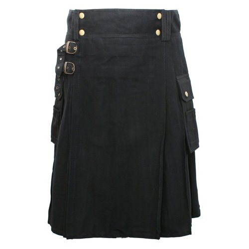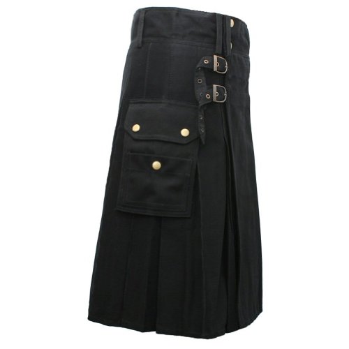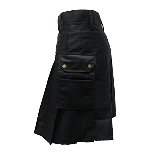 Tartanista - Kilt da lavoro, tattico/combattimento, con tasche Nero Tour de taille 101cm longueur 58,5cm