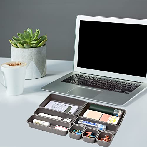TASAHNI Scatole portaoggetti separate, 8 pezzi, organizer per cassetti, cucina, sistema antiscivolo, per trucco, scrivania, bagno, ufficio, cucina, grigio chiaro