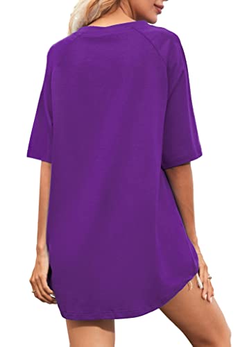TASAMO Top a maniche corte da donna girocollo estate top casual camicetta allentata camicia semplice maglietta di base, Viola, XL