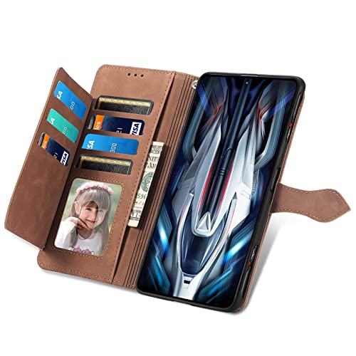 Tasca con Cerniera Custodia a portafoglio per OPPO A9 2020 Flip Cover con chiusura magnetica,tasca con cerniera 7 scomparti per carte di credito Cinturino da Polso Goffrato Fiore Cover Marrone