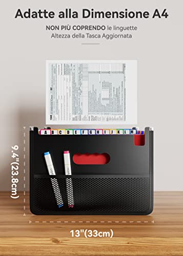 26 Tasche Cartella Portadocumenti A4 con design della borsa a rete-ABClife porta Documenti Espandibile/Articoli da Ufficio, Multicolore,Portatile,Fisarmonica,Plastica,Schede colorate alfabeto A-Z