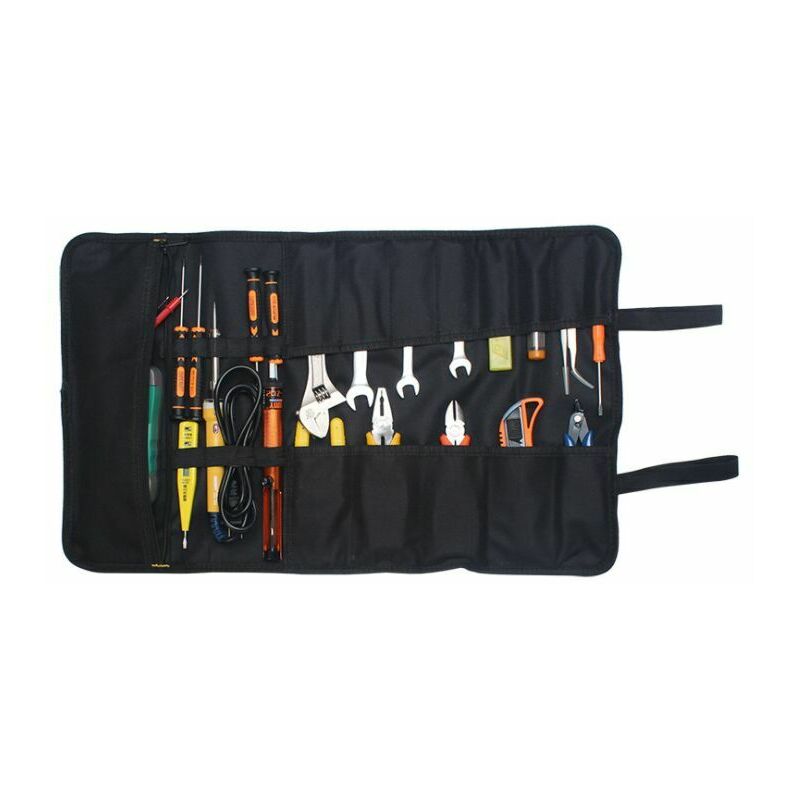 Design ispessimento Oxford 600 d, impermeabile e resistente all'usura. livella, chiave inglese, forbici e così via. Può essere usato come un rullo o per essere appeso al muro usando solo gli occhielli. L'ispessimento inferiore, porta il grande peso, resistente. Materiale: tela Oxford 600D Il pacchetto include: 1 X borsa per attrezzi multifunzionale (non include strumenti)