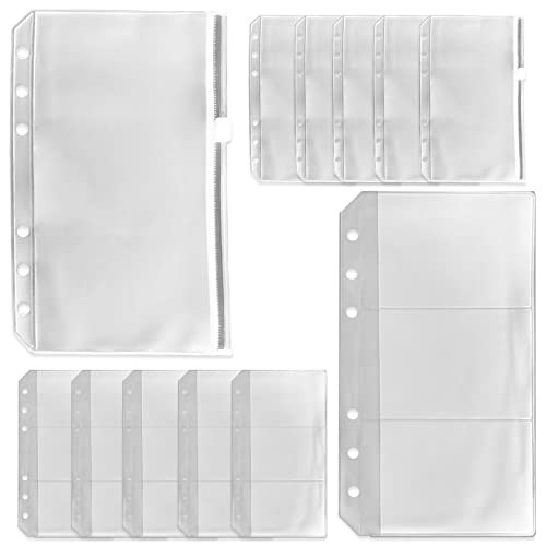 12 tasche per raccoglitori formato A6, tasca per raccoglitore con cerniera, borsa per riporre 3 tasche, due tipi, cartelle trasparenti con cerniera a 6 fori, Tasche Raccoglitore
