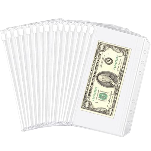 Tasche per raccoglitori A6, 15 Pezzi Fori per Formato A6 Vicloon Tasche Raccoglitore A6 in PVC trasparente a 6 fori Cartelle con cerniera Buste impermeabili per Documenti Notebook Carte